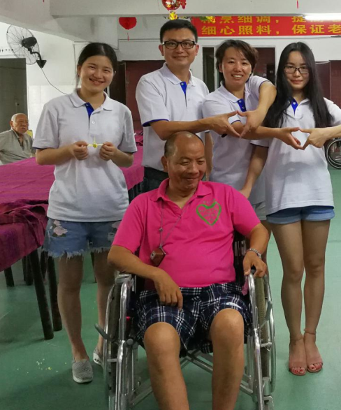 When we arrived at nursing home in the afternoon, the old people are sitting in the Canteen and watching TV. The feeling of my first glance is, how small the number of people? It is a big difference with the information provided by the contact. After checked, i found that a lot of old people lying in bed and can not to come. The second feeling is that many of them who sitting here are mobility. Seeing their gray hair, wrinkled face, rickets body, some old man hemiplegia, shrinking hands do not listen to the call, some dementia.That moment i feeling distressed. These old people just like our grandparents. They dedicatetheir youth and strength without reservation to their family, children, society. They suffering, after years of vicissitudes. It is lamenting the years ruthless and life easy old and let us know the precious of life and youth of the short, we should be grateful to the elderly, cherish life.
